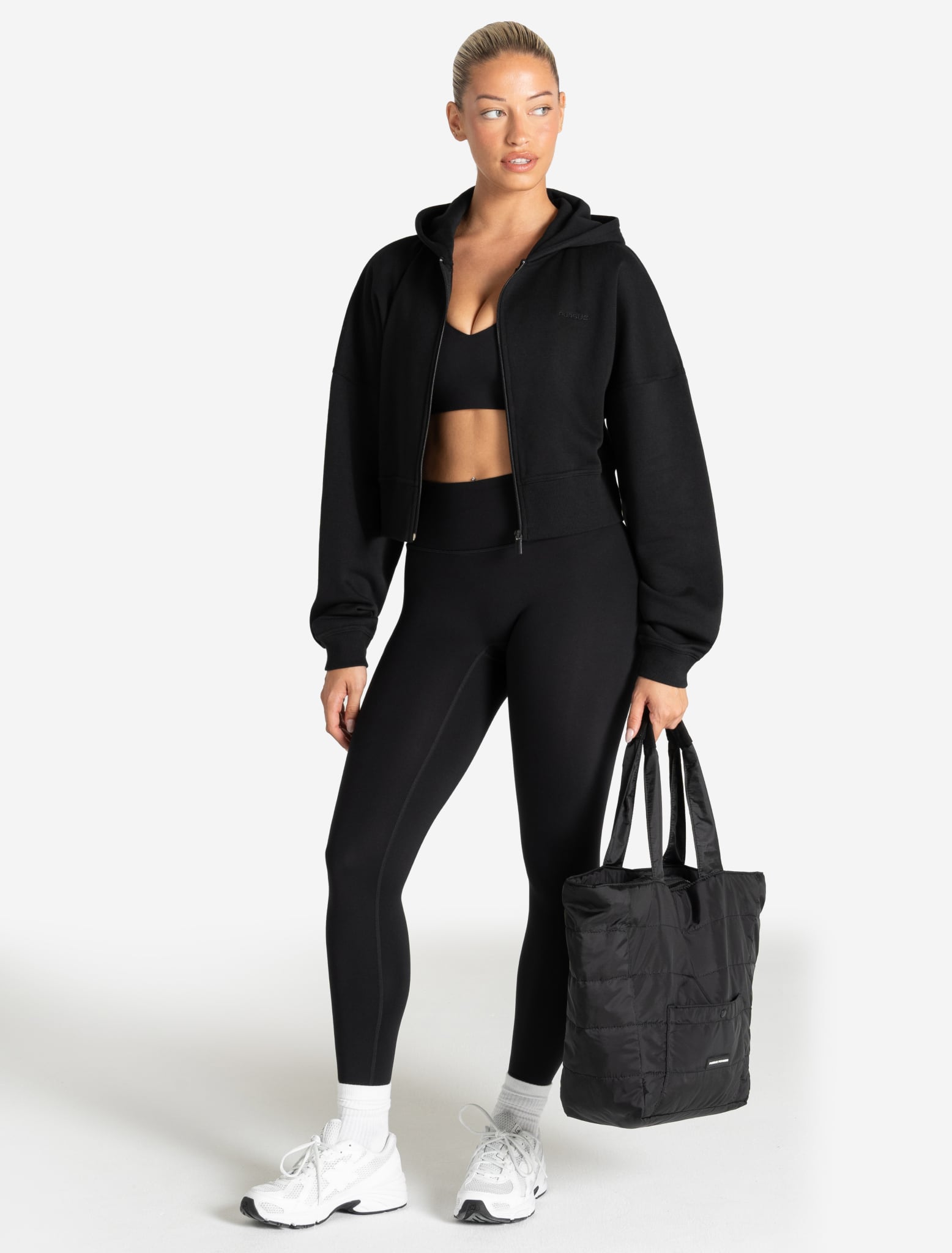 Core Crop Zip Hoodie - Black