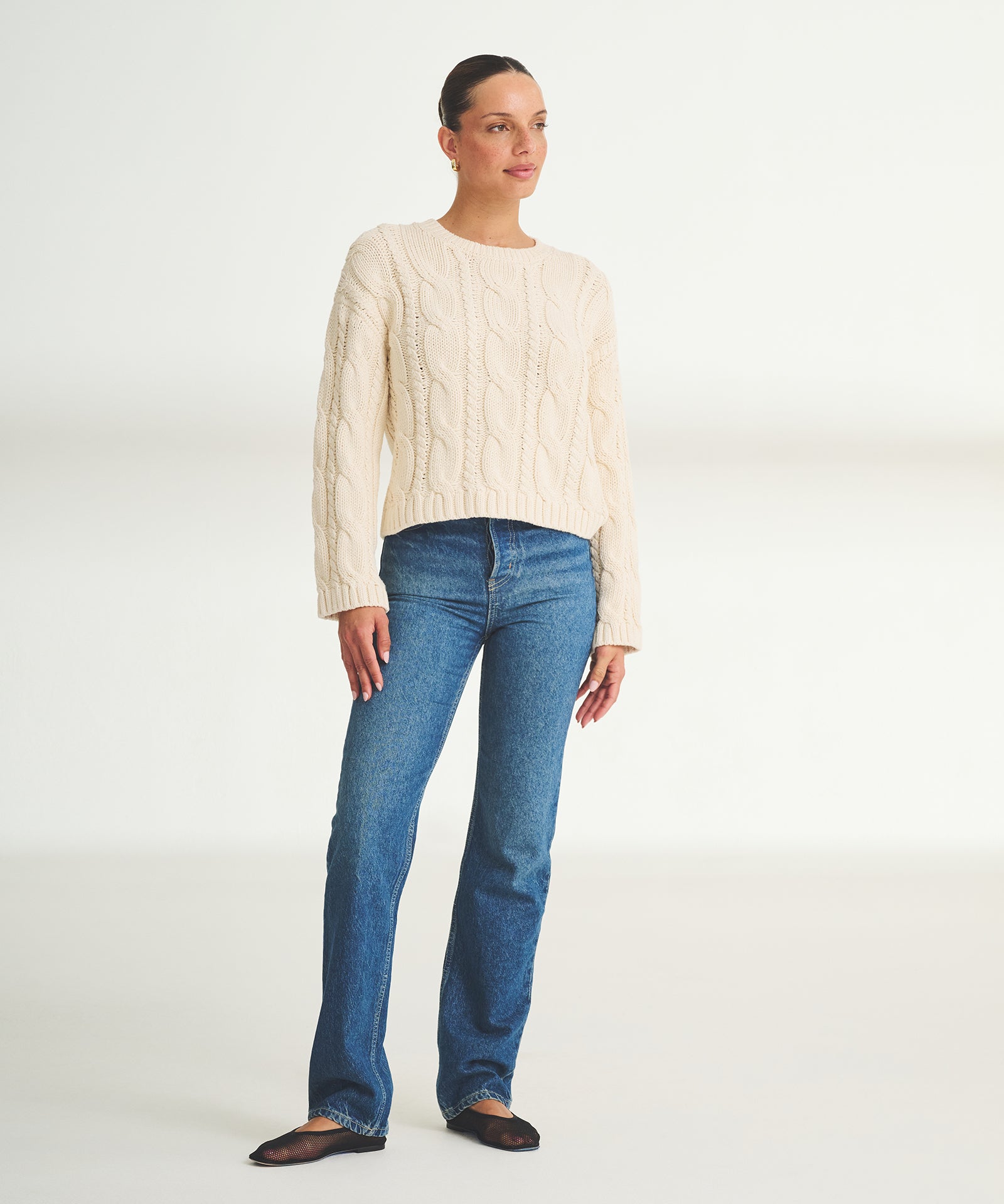 Luxe Cotton Cable Crewneck