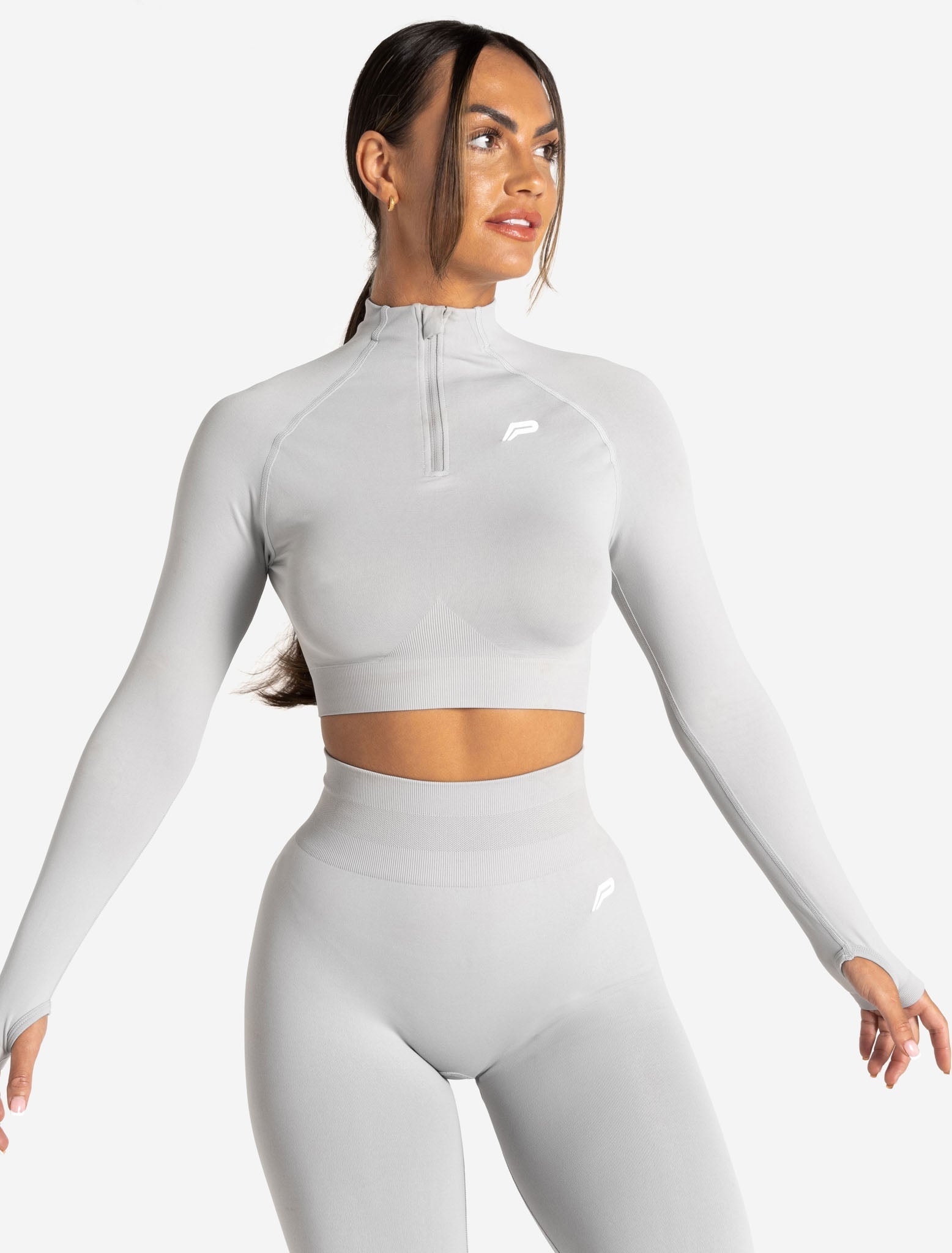 Scrunch Seamless Crop 1/2 Zip - Grey