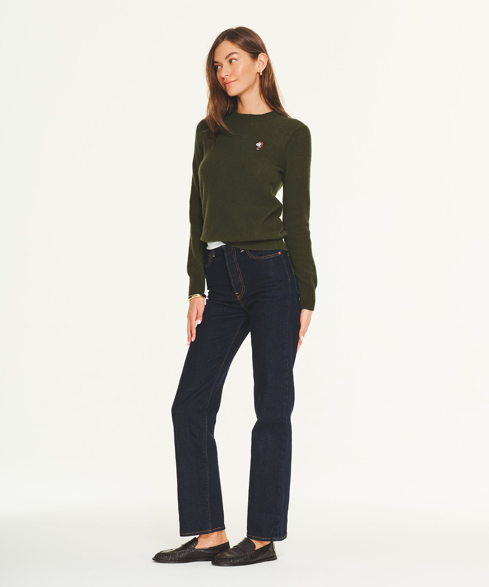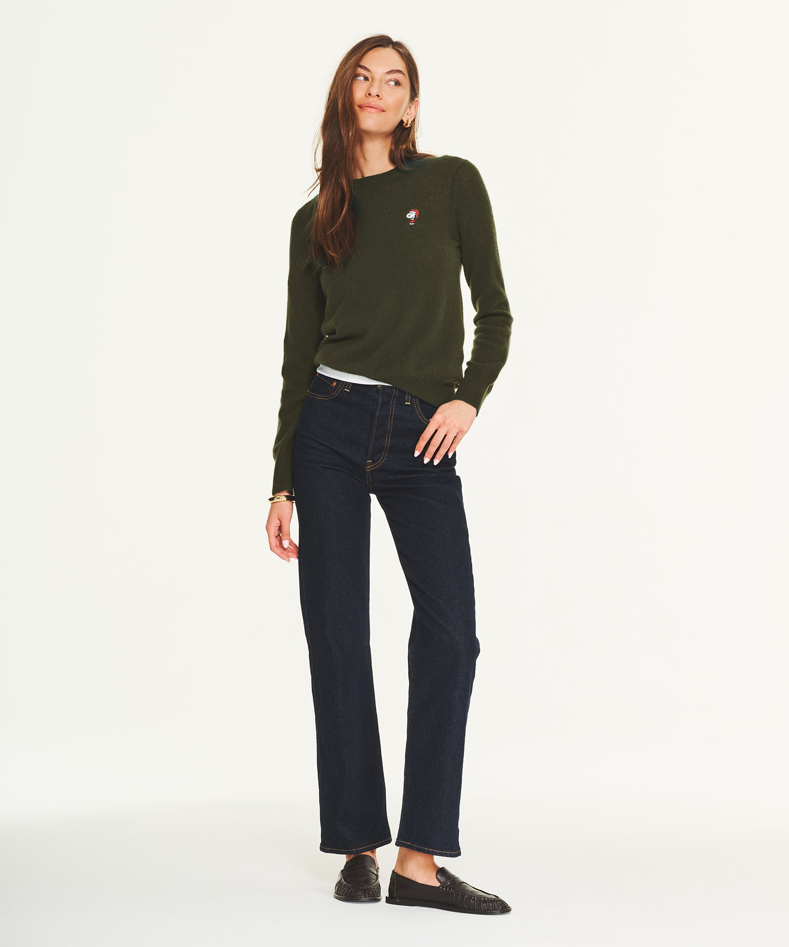 Women's Cashmere Snoopy Santa Holiday Sweater